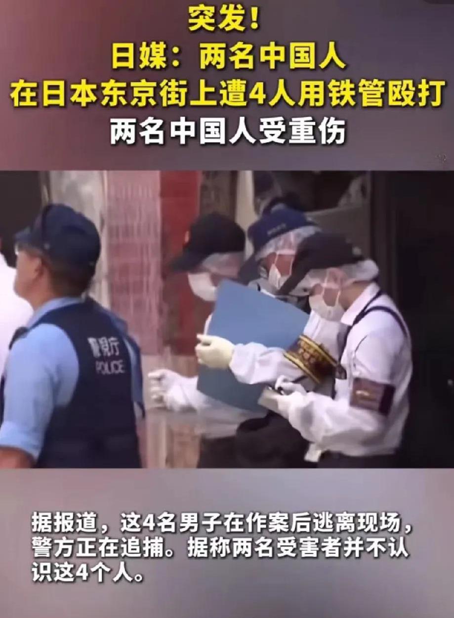 中国人在日本又被无故攻击了,两个中国人在东京街上,突然被4个人用铁管殴打至重伤,