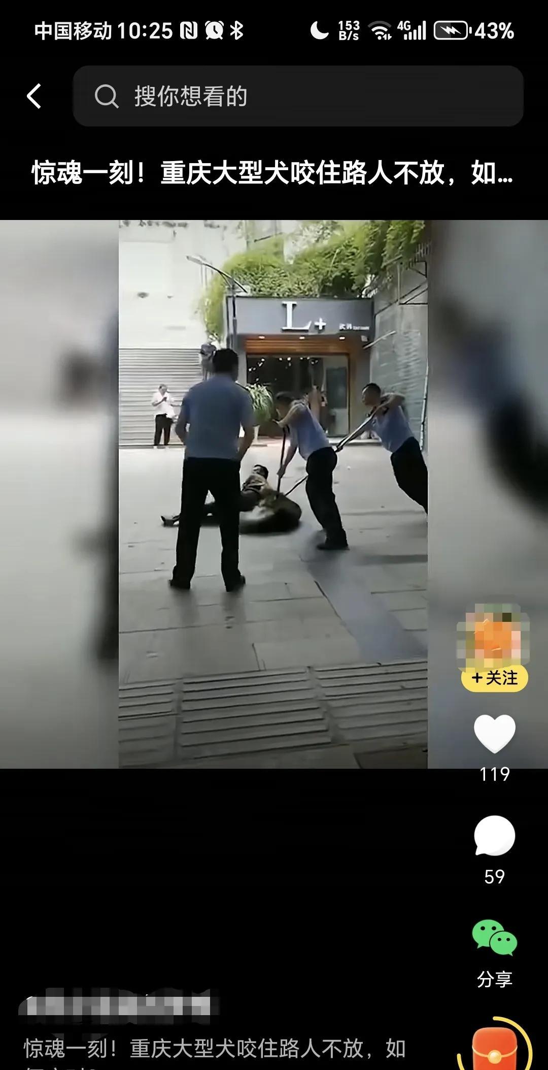 惊魂一刻,重庆大型犬咬住路人不放,民警持防爆钢叉解救。 真是太可怕了,对于这些大