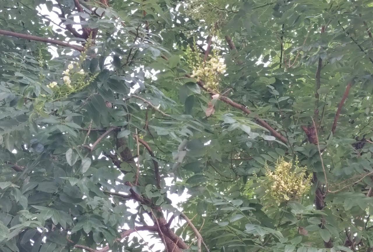我们淇县五百年古槐, 郁郁葱葱。 今天从古槐树下过, 竟然看到古槐树上还开了槐花