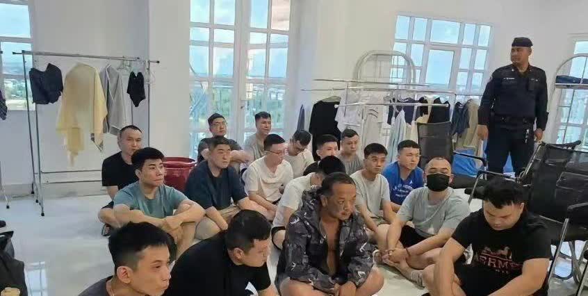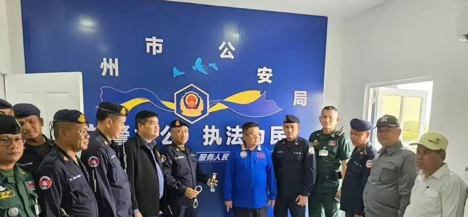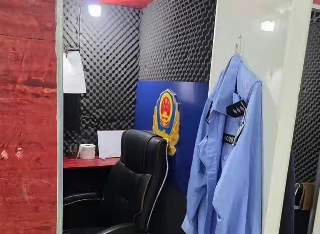 柬埔寨警方捣毁的电诈窝点。电诈份子为了逼真,伪造的公安局现场。