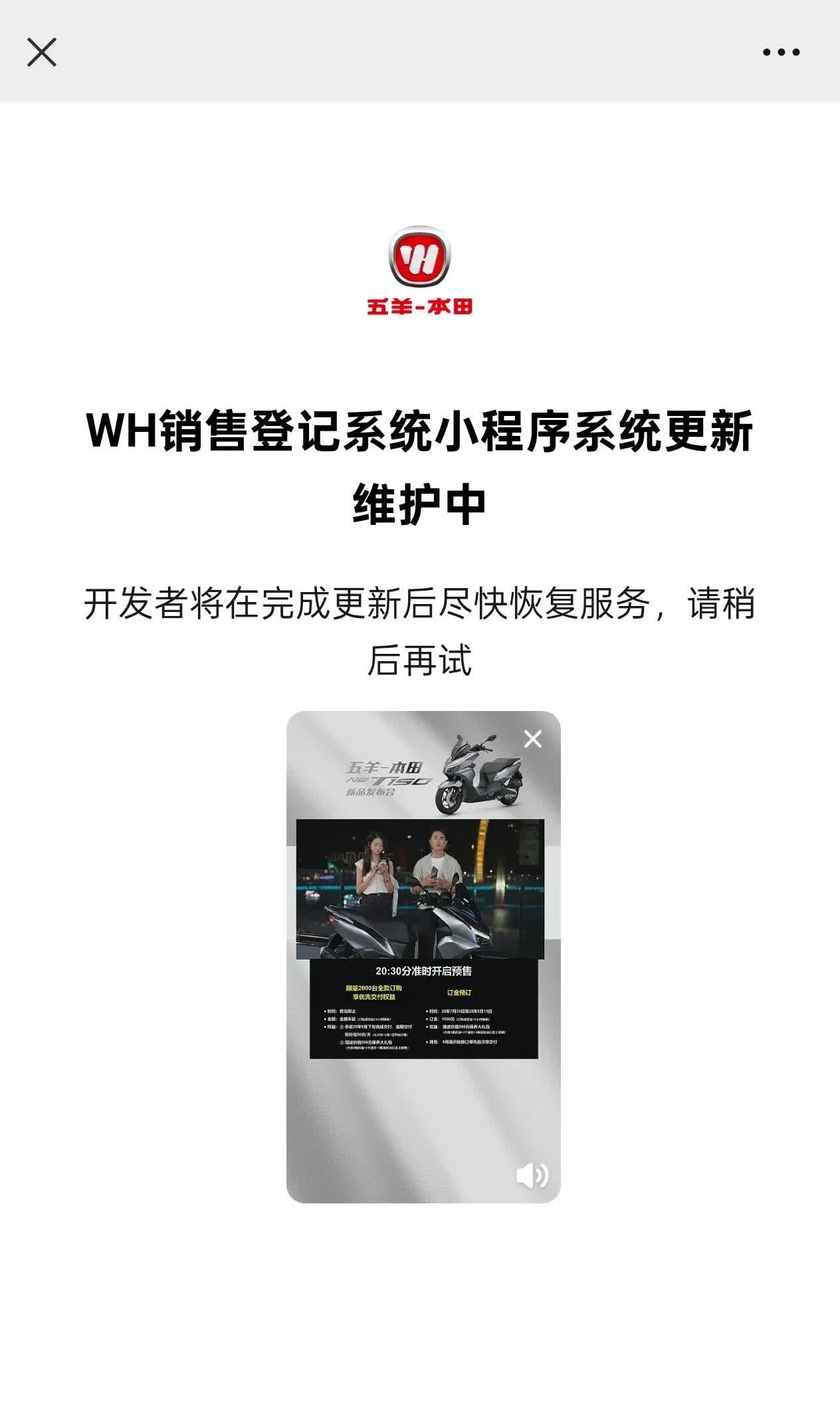 doog home fire 昨天五羊本田的NWT150发布,20点30分订车通道开启,可是服务器崩了,广大摩友点了一个小时也没订上车,最后订车通道直接关闭了!真是服了,这点预案都没有,有且只有一个平台可以订车,明显是自己挖坑么?
