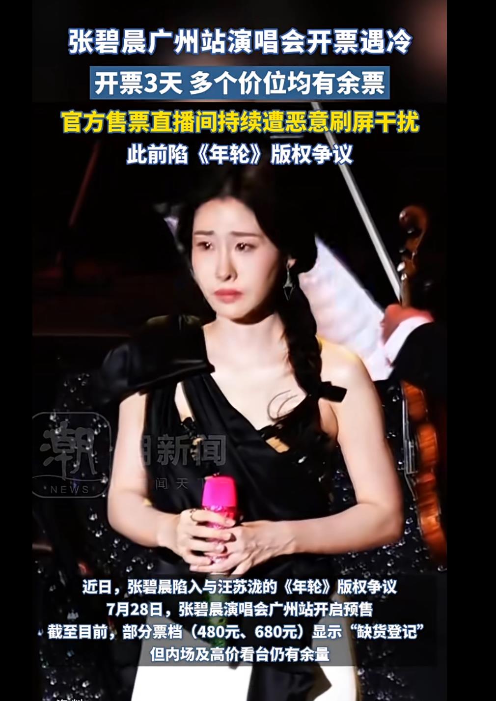 现在的网友,越来越像判官。 只要人品出问题,就会凉凉。 张碧晨广州站演唱会,销量惨淡, 开票三天,各价位都有余票。 要知道, 此前的杭州、成都演唱会, 门票开售即抢光。 前后对比好明显啊! 对于《年轮》版权争夺问题, 透露出格局和人品真的很重要。 作为公众人物, 有人追捧其颜值, 有人崇尚其作品 还有人学他为人处世。 对自己负责,就是对大众负责!