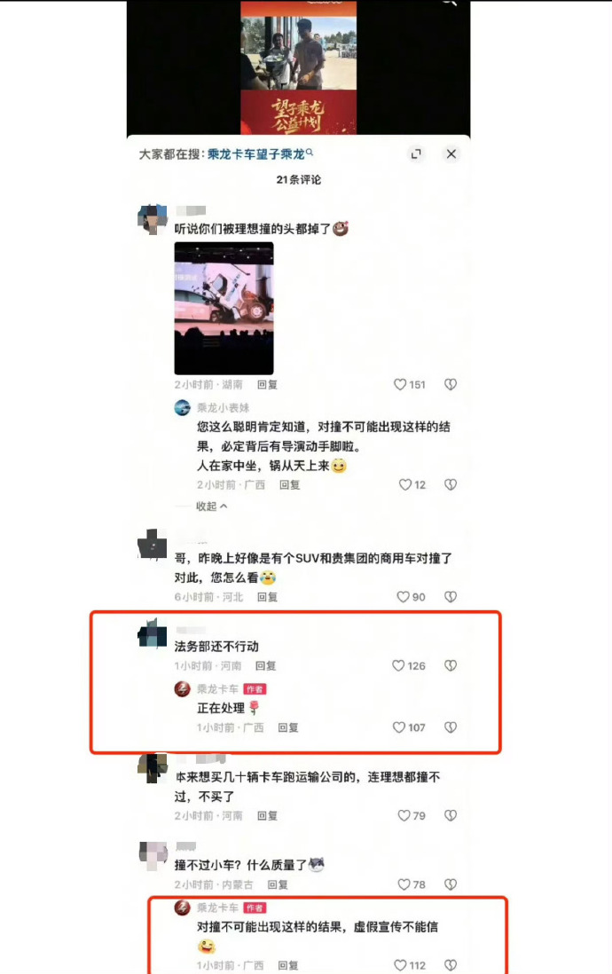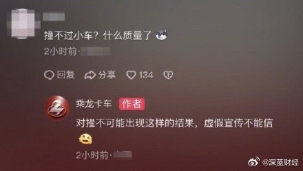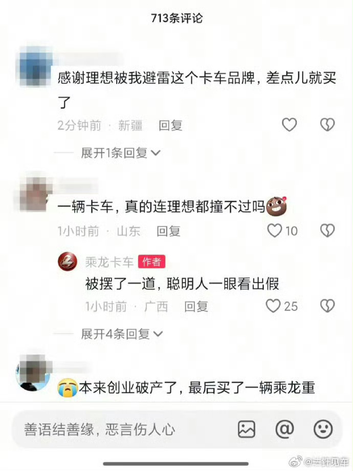 很多网友在质疑乘龙卡车的质量问题,说不敢买了。 目前乘龙卡车还没有正式的回复。