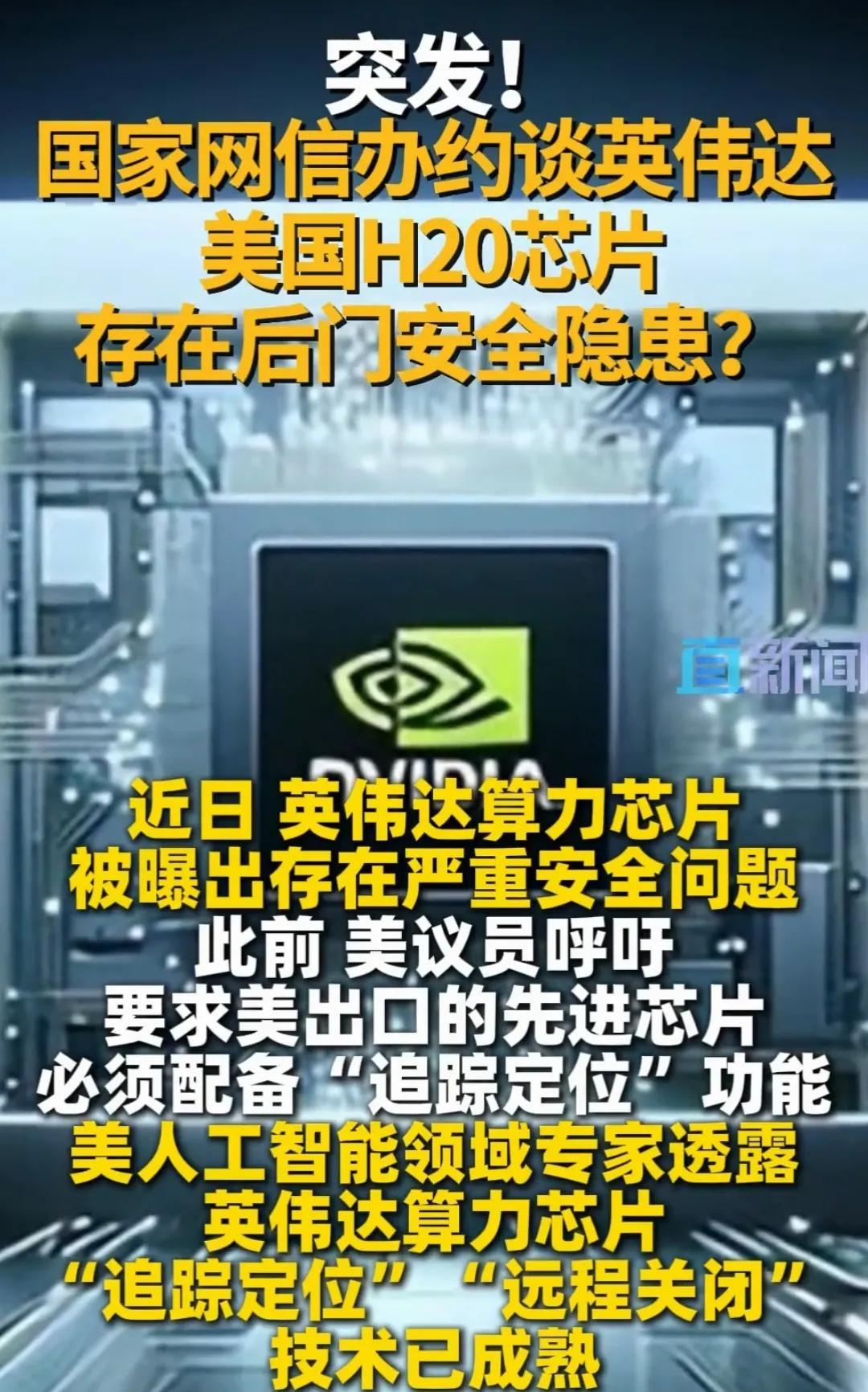 英伟达H20被查出“漏洞后门”的技术安全风险!已被约谈! 国家互联网信息办公室就