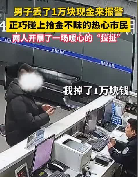 大爷永远是大爷!12月13日,浙江一男子不小心将一万块钱丢了,立即来到派出所报警,正当他为此感到着急时,一位捡到钱大爷恰好也来到了派出所报警,至此,两个人开始了一场暖心的“拉扯”。网友:“一个真想给,一个真不要。” 12月13号,浙江有个大哥不小心把一万块钱现金弄丢了,急得赶紧打了110。巧的是,正好有个好心大爷捡到了这笔钱,也跑到了同一个派出所报案。结果两人就在派出所碰面了,这事儿真是又暖心又巧。 原来啊,张大哥那天把钱揣兜里,结果半路上不小心掉了。发现钱没了,他急得团团转,立马跑到派出所,把自己走过的路详细说了一遍,然后就坐在大厅里等着,心里挺没底的。就在他觉得找回钱无望的时候,朱大爷走进来,手里拿着一大沓钱,说是路上捡的。民警一问地点,直接指了指张大哥:“失主在这儿呢!” 张大哥高兴坏了,赶紧跟朱大爷道谢,还当场就要抽几张钱给大爷表示感谢。结果朱大爷连连摆手,说啥也不要。两人在大厅里推来推去,一个真心想送,一个坚决不收,场面特别温馨,周围的人都看得挺感动,都说:“一个真大方,一个真朴实。”最后,在大伙儿的注视下,朱大爷才不好意思地收下了张先生的感谢,然后就走了。这场因为钱丢了又被找回的“小风波”,不光让一万块钱回了家,还让大家看到了人心里的那份热乎劲儿。这事儿发生在美丽的浙江。
