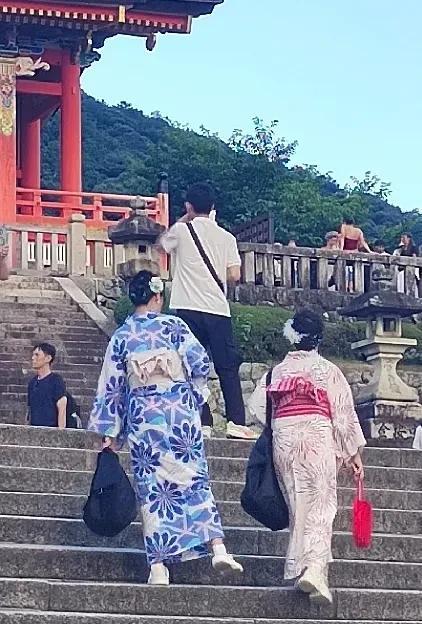 今天7.31,在日本京都景区看到好多穿和服的。 这些人99.99%都是我们国人。 当然,99.99%的国人都不会穿这个服装。 当然,日本人99.99%也不会在这个季节穿这个服装,因为今天温度将近40℃,穿着并不舒服。 真不知道这些人怎么想的,真穿得舒服吗?还是觉得很美呢?