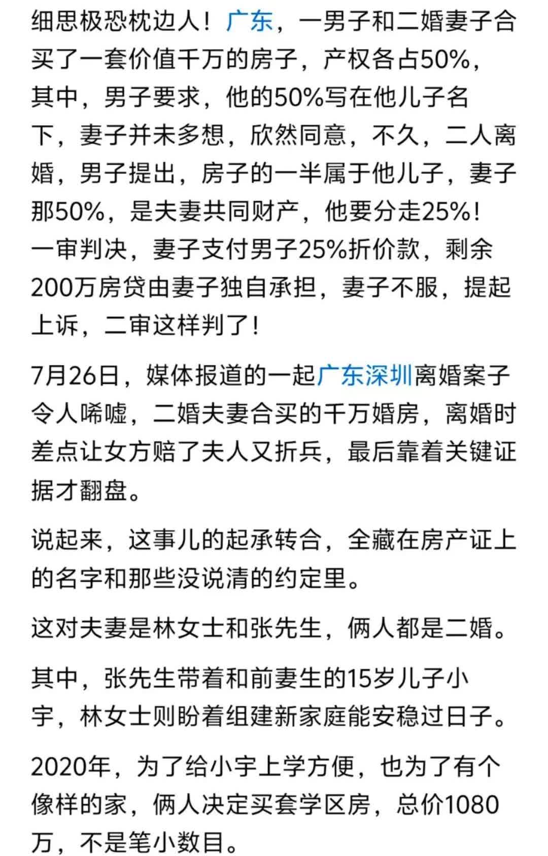 细思极恐[恐惧] 广东一男子再婚,和二婚妻子合买了一套房子,房子价值千万