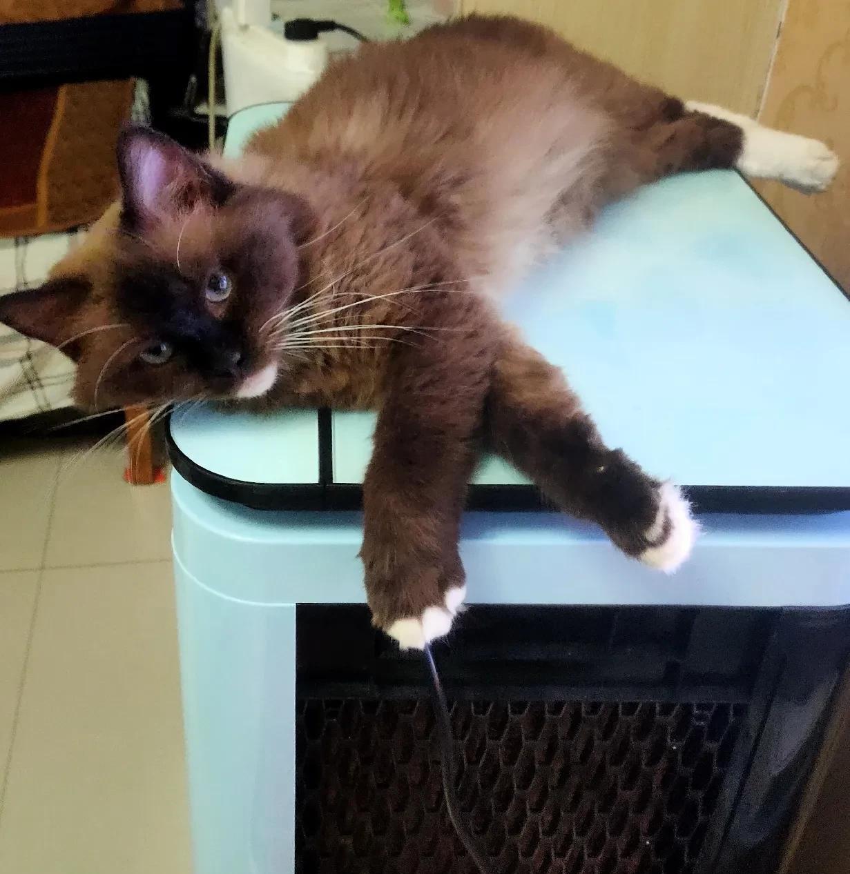 猫警长这段时间也懒了,每天好吃好喝供着,遇到段时间的高温天气,它也开始躺平了。 成都最近一段时间都是三十八九度的高温天气,只要一出门,热气扑面而来,成都已进入了烤箱模式。所以能不出门尽量不出,如果非要出门请备好防暑三神器:藿香正气液、扇子、淡盐白开水。 我家咪咪这两天也热瘫了,以前每天晚上都要去厨房值勤抓蟑螂,现在开始选择躺平了,每晚我开空调或冷风机,它就躺在电脑桌上或冷风机上。一动不动,难怪这两天厨房的蟑螂开始横行霸道,甚至倾巢出动了。希望成都气温快点降下来,到我家咪咪又该大展拳脚,值勤上岗了。