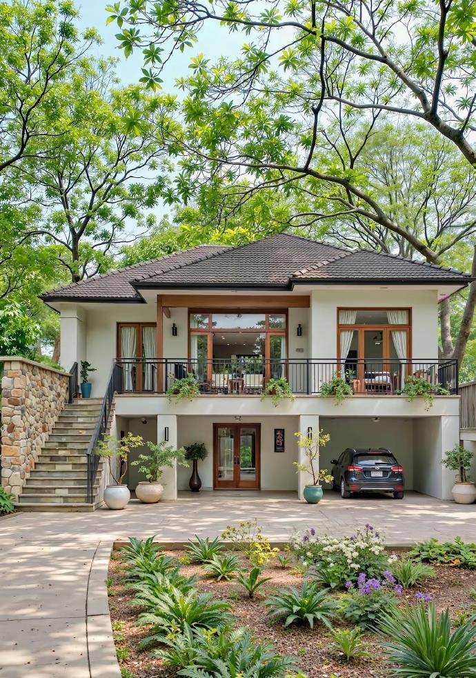 上面至少有三层.才能住人要不然夏天热冬天冷!楼梯应该在室内或者有顶棚水淋热 晒上青苔,如果冬季结冰!这样露天的会送着很多人!