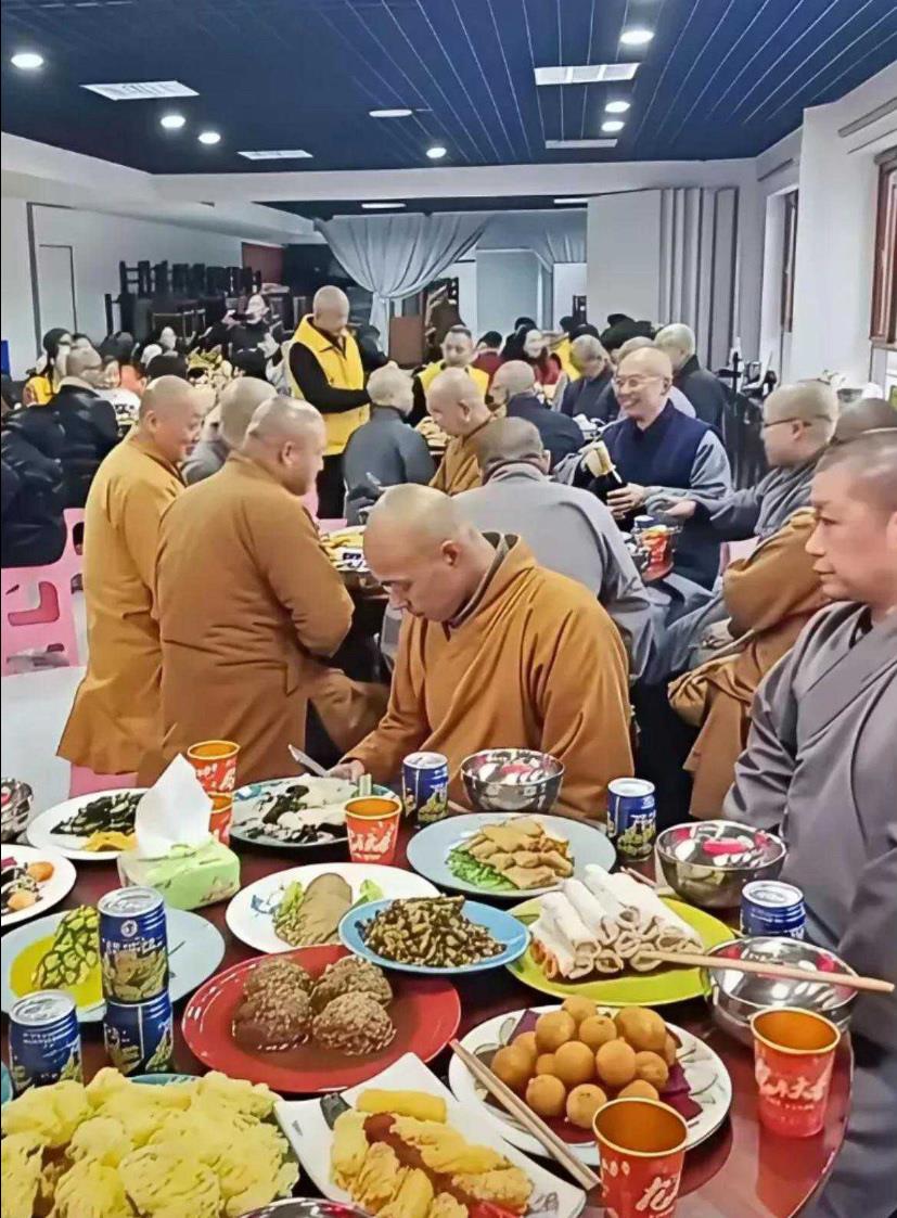 “高僧”们伙食真好,个个吃得张口舔舌,红光满面,肥头大耳,要不是那一袭僧袍以及那一颗发光的头颅,还真看不出是和尚。