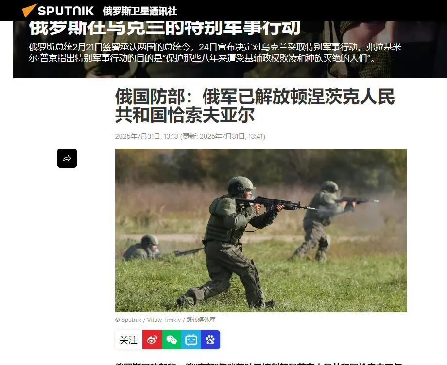 俄军攻占恰索夫亚尔!俄罗斯国防部已宣布,南部军区部队完全占领恰索夫亚尔市。该县城