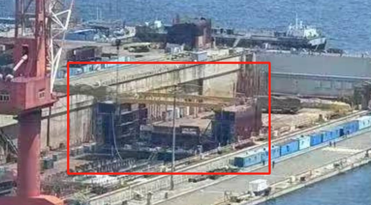新航母组件在大连造船厂船台内成型准备迎接核动力航空母舰吧 不仅船台内的组件越来