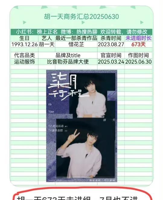 普天同庆啊!! 抠脚两年的胡一天终于要进组了!! 今天胡一天工作室发了8月行程,