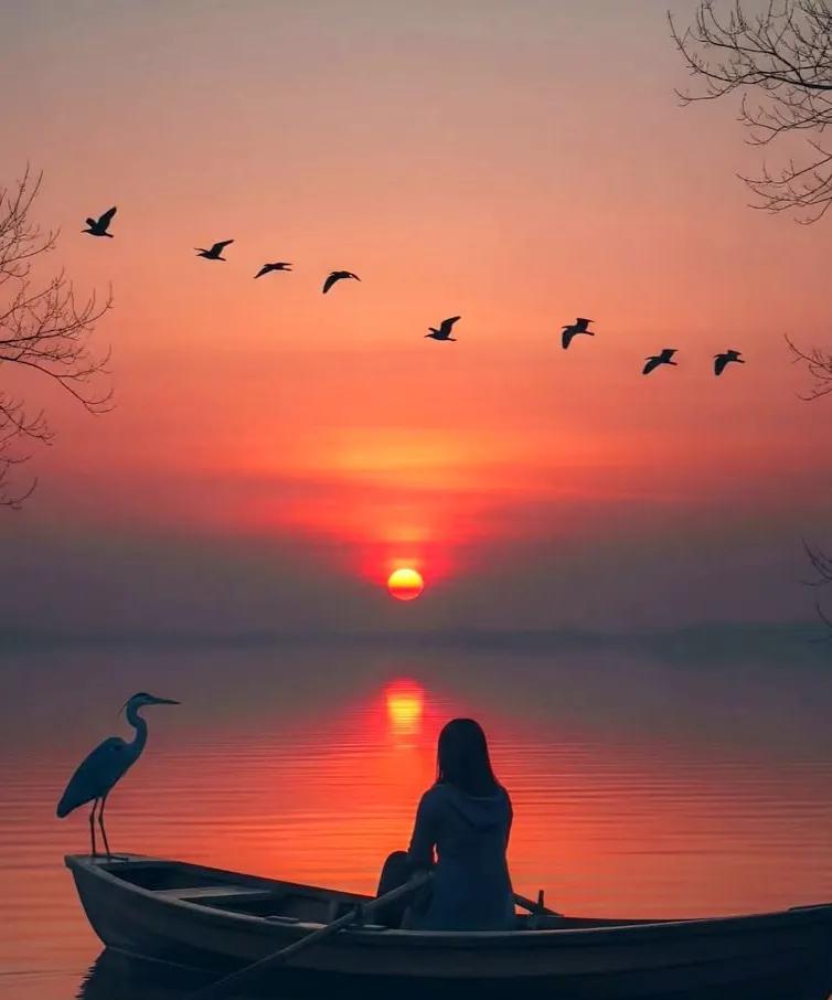 日出红似海,红似一片天,大燕南飞去,只寻一知己