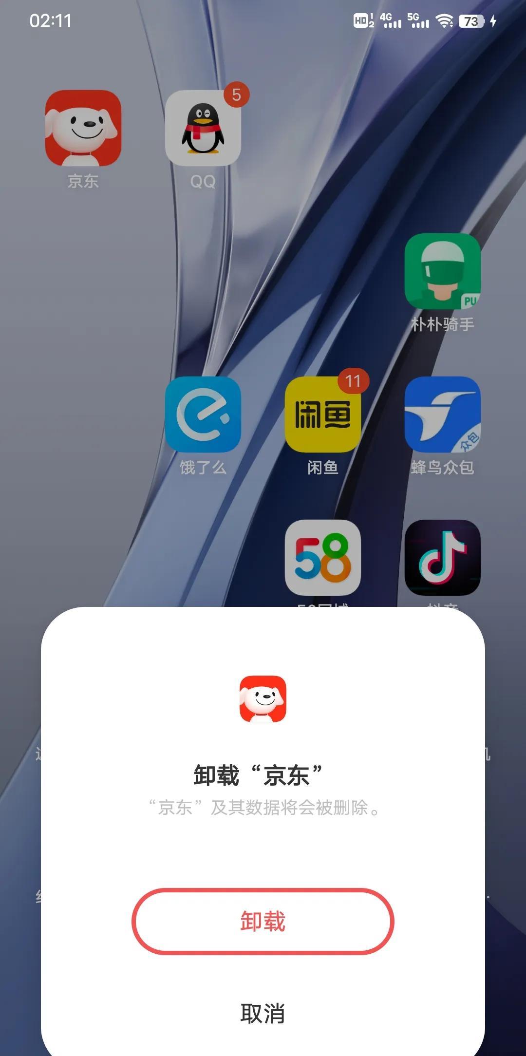 忍痛卸载京东,再也不会用了,支持京东破坏生态平衡的继续用京东,跟我一样不喜欢京东这种发展模式的都可以卸载,我说京东破坏餐饮行业,压缩小老板的生存空间你们不信还怼我,我也没办法。我卸载京东你们这些京东死忠粉总管不了吧!(京东七鲜小厨一定会失败的,希望各地餐饮协会能引起重视。)