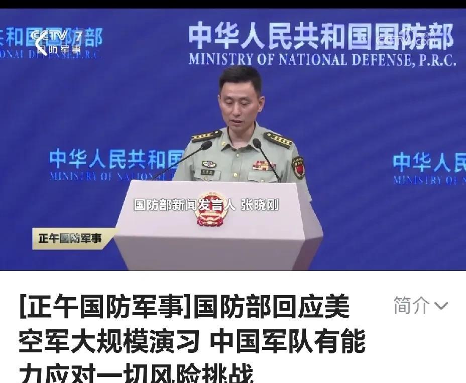 昨天下午,国防部例行记者招待会。#头号创作者激励计划# 国防部新闻发言人张晓刚大校指出,针对美国空军在西太平洋开展历史上最大规模军事演习,中国军队有信心、有能力应对一切风险挑战。 他指出,太平洋本应该是太平之地,但美国以军事演习为幌子,在太平洋地区勾连一些国家,建立军事同盟,拉帮结派,耀武扬威,实属麻烦的制造者。中国军队决不会被外部势力所吓倒,有能力挫败一切来犯之敌。