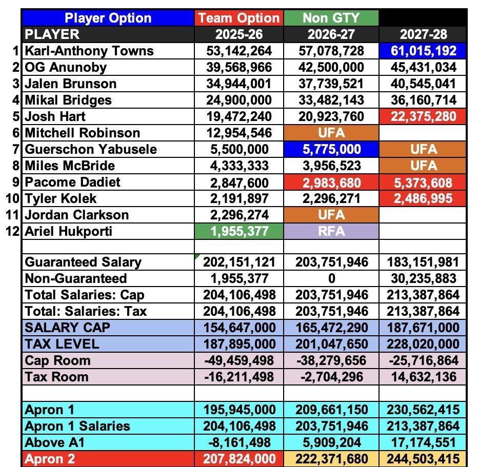 续上了!纽约尼克斯和大桥续上了! 据Shanms报道,尼克斯今天和麦考布里奇斯完成了一笔4年1.5亿美元的续约合同。布里奇斯最高续约金额可以达到1.56亿美元,但是为了保持一定的调整阵容的空间,大桥没有要求顶格续约,以略低于顶格的数字完成了签约。 纽约尼克斯再接下来三年都会有比较稳定的冲冠核心阵容,但是缺点就是,这套阵容到了27-28年,7个人工资就要2.13亿美元,距离第一土豪线1700万,这其实很难做到有效补充,这笔钱在27年可能连一个全额中产都不够。所以对于尼克斯来说,最好的结果就是两年内拿到冠军,至少打进总决赛,这样老板才会坚定的交税,不要选秀权去维持冠军阵容。否则,现在的凯尔特人就是明天的尼克斯。 大桥仔这个续约上,可以算是赢家,对他来说,拿到大合同才是真正的意义,尤其是自己表现的也对得起这份合同。而且根据大桥这种劳模表现,虽然总价不低,但是如果平均到出场时间来看,还是非常划算的。 不论怎么说,尼克斯夏天的补强也基本结束了,现在的人员已经足够开启赛季了,今年的目标就是不要超过第二土豪线,所以剩下的三个人,就看中期怎么补了,大概率可能就是双向转正,反正尼克斯的主力球员前几年也练出来了,不需要太多替补。 #头号创作者激励计划#