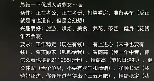 有时候真奇怪 一个女生,正在考编,算工作吗?那不就是无业吗? 国家教育部,这种都不计算就业率的 一个女生,喜欢旅游,烘焙,插花,美食,这算特长吗? 这不就是享受吗? 有钱了,人人都喜欢吃喝玩乐啊 你好歹喜欢个钢琴,小提琴,还算需要培养的爱好啊 所以,小仙女这么说,只是告诉大家 她一无所有,还喜欢享受 把人性的劣根性都显现出来了