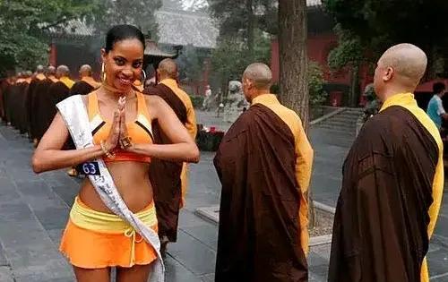 印乐法师见过的外国美女不少哦,若是这些美女看到帅气的释明心法师,会不会来一句:“悄悄问圣僧,女儿美不美?”其实释明心挺帅的,让他饰演唐僧都没问题。