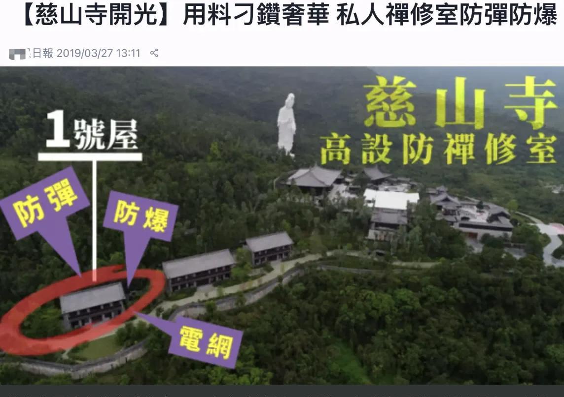 李嘉诚信佛,在香港人尽皆知 没想到的是,居然投资35亿建寺庙, 这就是位于香港的慈山寺, 背山靠海,选址非常讲究[捂脸][捂脸] 寺庙的建筑材料,也非常讲究, 木材是从非洲进口的紫檀木, 而坡屋顶为了色泽均匀, 特意从日本烧造银瓦, 室内很多造型,直接镀上24K金 还不惜花费重金,依山就势, 打造了一座76米高的观音圣像, 不得不说,有钱是真好[发怒][发怒] 因为慈山寺,还有个佛教艺术博物馆, 收藏着很多珍宝, 不乏一些价值连城的宝贝, 比如下图中的辽代观音菩萨木雕坐像[捂脸][捂脸] 更让人惊讶的是, 李嘉诚居然为了方便自己, 在慈山寺的角落, 花费巨资兴建了一座独立防弹禅房, 确保自己使用时的安全[捂脸][捂脸] 对于你们人生经验比较丰富的朋友, 这座李嘉诚投资35亿的寺庙, 你怎么看? #晒图笔记大赛# #头号创作者激励计划#