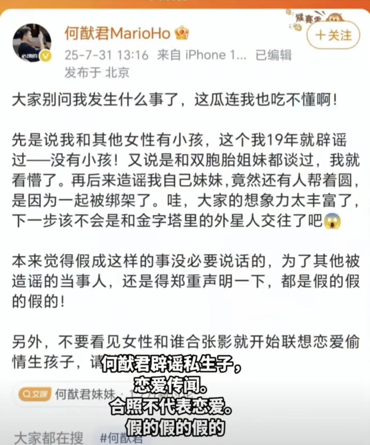 #头号创作者激励计划# 何猷君在和奚梦瑶结婚前,一共交往了三个女朋友。 第一个女