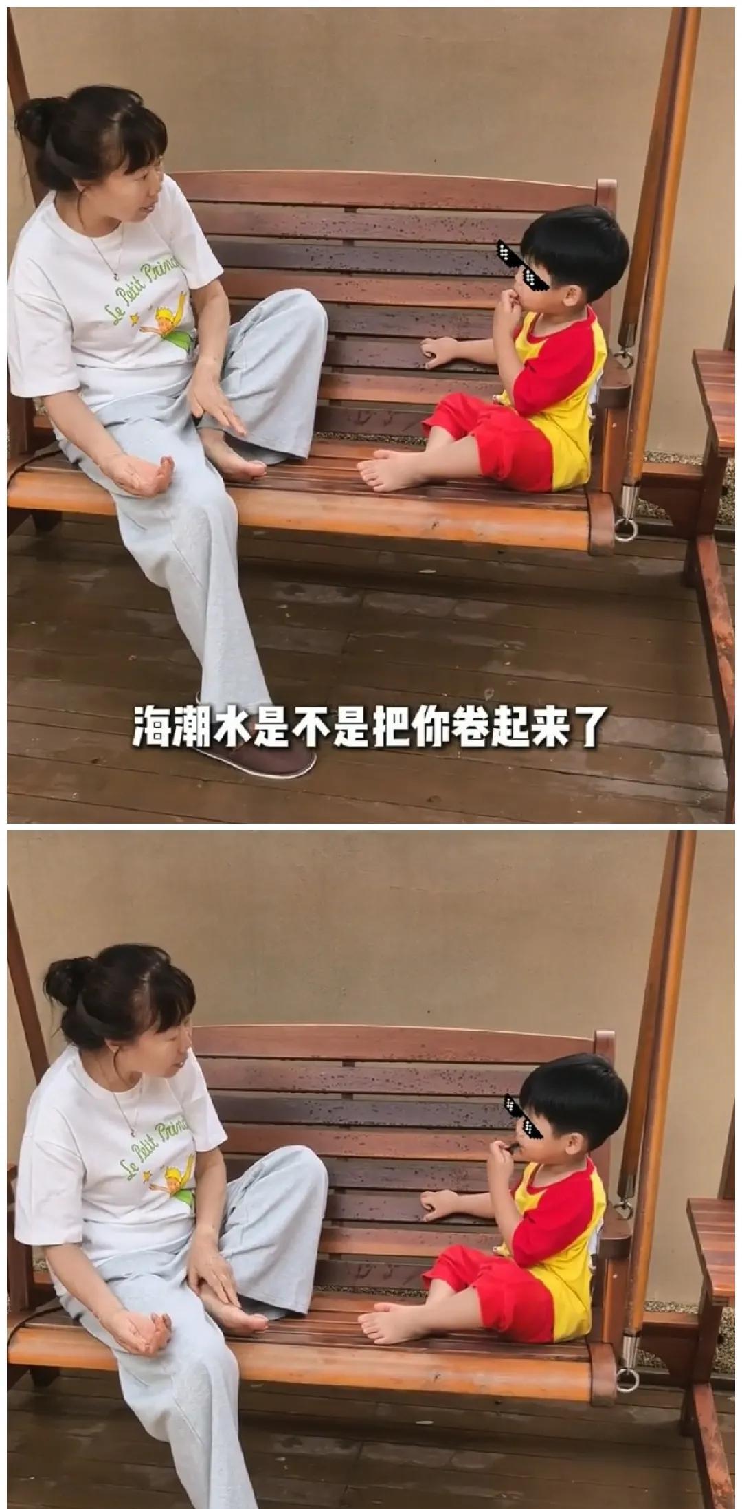 老苏总阿荷带苏醒两个儿子去海边玩,两个孩子赖着不想走:我没玩好。老苏总:下午你跟你妈还可以来 回去阿荷跟小小苏聊天:今天你在海边表现的特别棒,你是不是冲海浪了,海潮水是不是把你卷起来了 小小苏乖乖答:是 阿荷:你有没有尝到海水的味道 小小苏:尝到了 阿荷:是什么味道 小小苏:蓝莓味 阿荷:哈哈哈胡说
