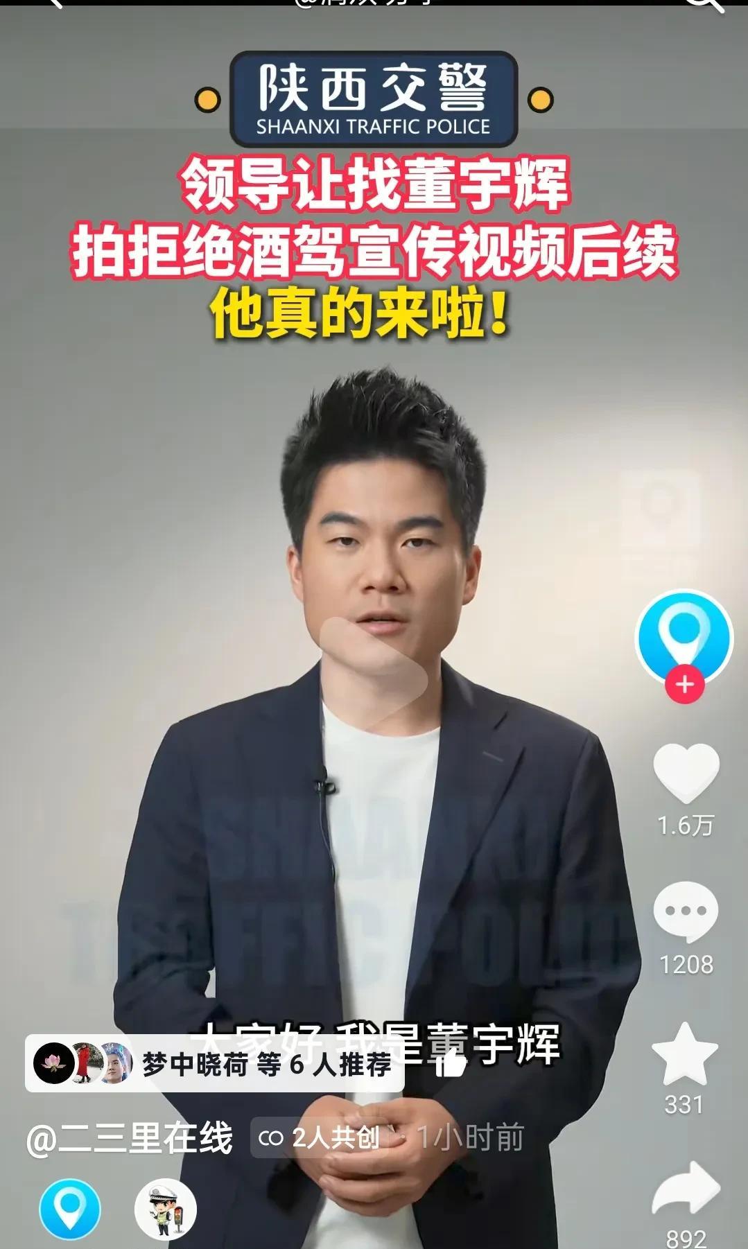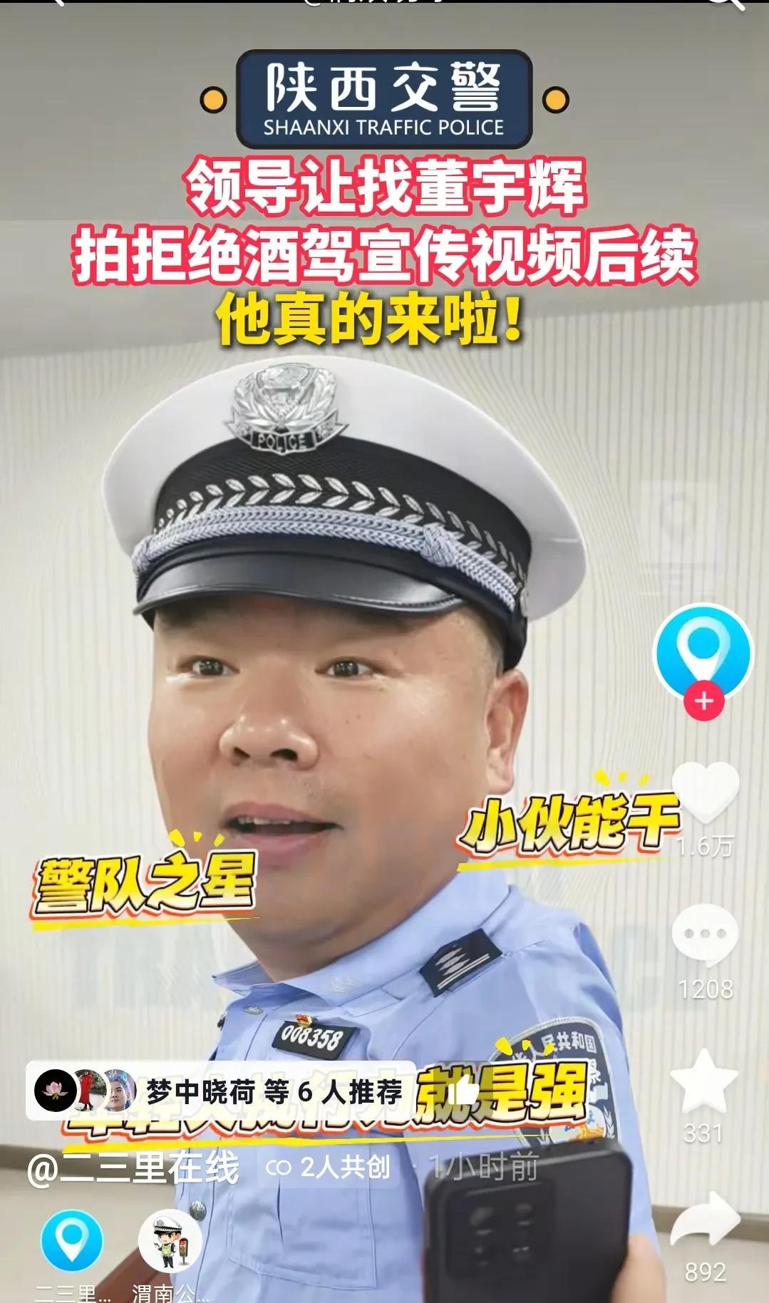 陕西真是出了个好娃,渭南交警想请宇辉拍个拒绝酒驾的宣传片,本来就是一个段子,他们