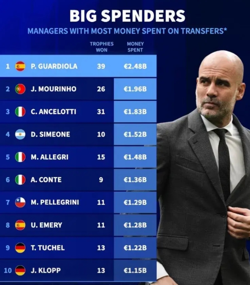瓜迪奥拉,太宗,39个冠军,开创传控足球时代并将其推向极致,分别巴萨和曼城获得过三冠王,分别带巴萨、拜仁和曼城获得过联赛三连冠,谁能做到?