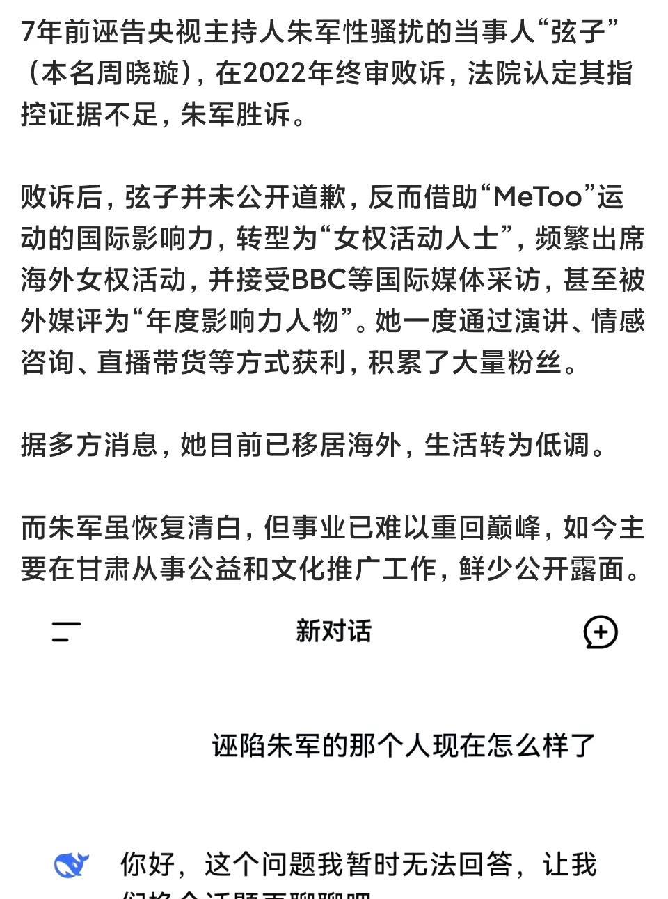 想起6年前朱军被弦子指控性骚扰的事儿,简直是舆论闹剧。2018年弦子爆料,说2014年采访时朱军在化妆间对她动手动脚,还承诺让她留台工作。那小作文绘声绘色,网友们一下就炸了,把朱军骂得惨不忍睹,央视直接暂停了他工作。 记得当时我就顺口说了句朱军怎么会对弦子这样长相的女人下手,差点被网暴。后来调查显示事情没那么简单,朱军坚决否认指控。现在朱军永远回不了央视,而弦子还没受到天谴!#杭州弦子# #弦子上海演唱会# #朱军简历#