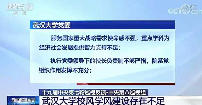 中央第八巡视组:武汉大学校风学风存在不足。看似说的比较委婉,实际上已经算是非常严