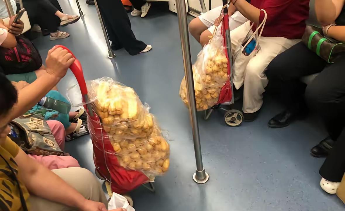 郑州地铁奇葩一幕,两位屯油条的大妈小车拉了上百根。网友问买这么多能吃了吗?大妈说