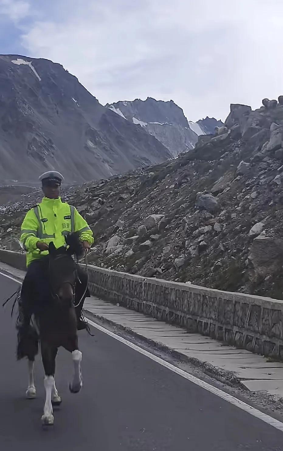 西北地区,有种特殊的警种存在,叫骑警。 在新疆哪里,交警要出来执勤交通道路任务,都是骑着马匹出来的,这就成了人们口中的一件新奇事。 哪里的交警为什么不骑摩托呢?答案就是摩托车容易抛锚,在崎岖的山路中,摩托车不好使,还是马匹好用,千里戈壁,一把青草的事,战斗力爆表的。 所以,这里的交警骑马,又成了一道特殊的风景线 。