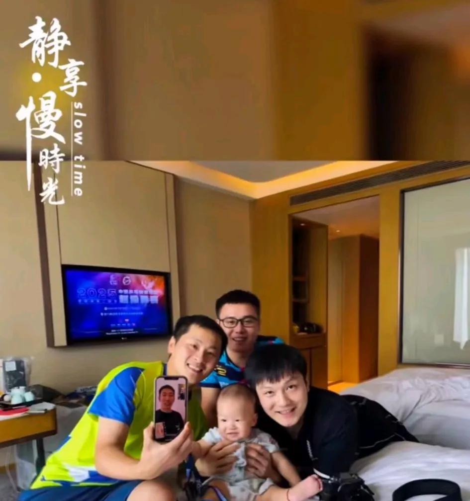 大淇也学习带孩子了。 刚刚看到郑培锋更新了动态,他说:“没想到第一次带你上台打球的竟然是你靖淇叔叔,起点很高,泰酷辣!”真的是幸福的小朋友啊,大淇握着他的小手打球时,看他笑的多开心,这长大了早早就会打球了,身边都是厉害的叔叔们。 看到有网友说:“这孩子起点太高了,一会儿东东叔叔抱着,一会儿又靖淇叔叔陪打球。”这个小朋友看着就是情绪稳定的宝宝,乒超第二阶段比赛,郑培锋也带着孩子去了,还和樊振东一起合影,樊振东也抱小宝宝了,这孩子性格真好,不认生,谁都可以抱,还爱笑。 大淇现在也有女朋友了,可以学习带娃,等着自己有娃了,就有经验的。去年这时候大淇还单身呢,现在的大淇和谈初心也谈了甜甜的恋爱,很幸福。