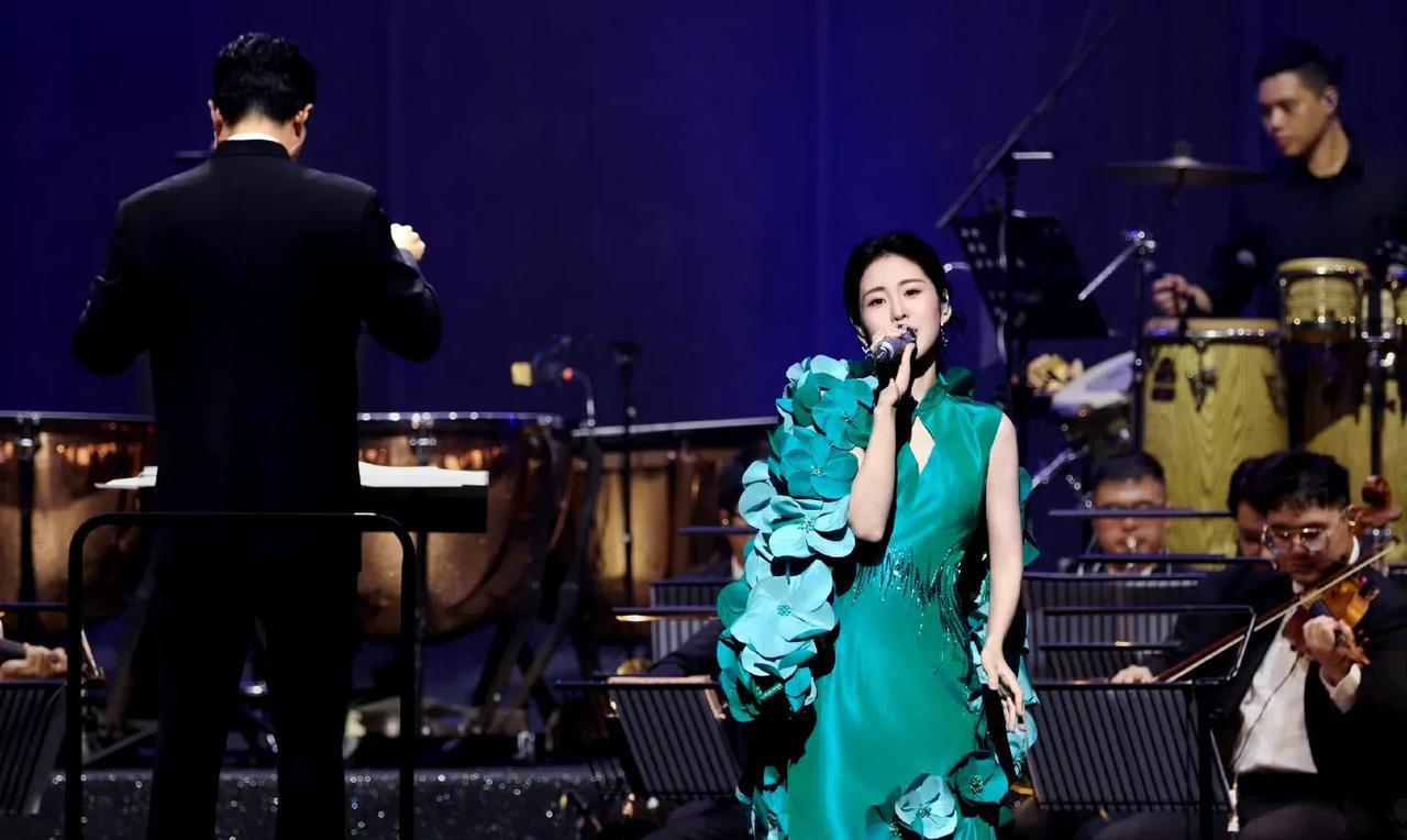 #张碧晨爱的史诗交响演唱会# 张碧晨的舞台在创新形式上实现了突破性呈现。 交响乐融合:特邀北京交响乐团、浙江交响乐团联袂合作,对经典作品进行全新编曲。《开往早晨的午夜》以恢弘弦乐开篇,为OST歌曲注入史诗质感;《凉凉》《东方之珠》等曲目则借弦乐层层烘托情感浓度,被观众盛赞为“细糠级现场”。 舞美设计:每站演出的服装与视觉细节均有迭代升级。