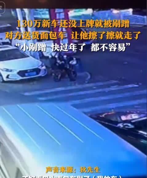 北京,一男子刚刚花了130万购买了一辆新车,还没上牌就被路过的面包车司机给剐蹭了