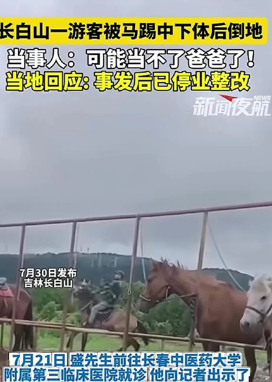 “太惨了!”吉利长白山一名男子去马场骑马,结果刚走到马身后就被马一脚踢中下体,男