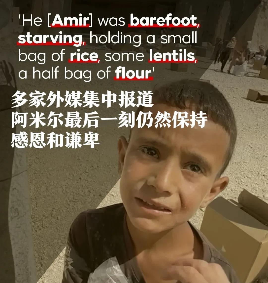 被派驻到加沙的美国绿色贝雷帽部队成员:至少我们不该忘记这个加沙孩子,那里简直是十级反乌托邦炼狱。 加沙儿童阿米尔,五岁,步行12公就为了到援助配发点讨要点吃的果腹。 他遇到了当时在那里工作的美国绿色贝雷帽成员安东尼·阿奎拉。安东尼友善地蹲下,召唤他过去。阿米尔抓住安东尼的手,不停说着阿拉伯语的谢谢,一边不停亲吻安东尼的手。随后阿米尔又回到了自己的队伍,慢慢离开了援助配发地点。 很快安东尼听到了附近护堤传来的枪炮声,那是以色列部队朝安东尼的队伍在扫射。安东尼急忙冲上护堤,在另一侧他看到了一动不动的阿米尔。随后安东尼主动辞职,表示道德上受不了这样的冲击。