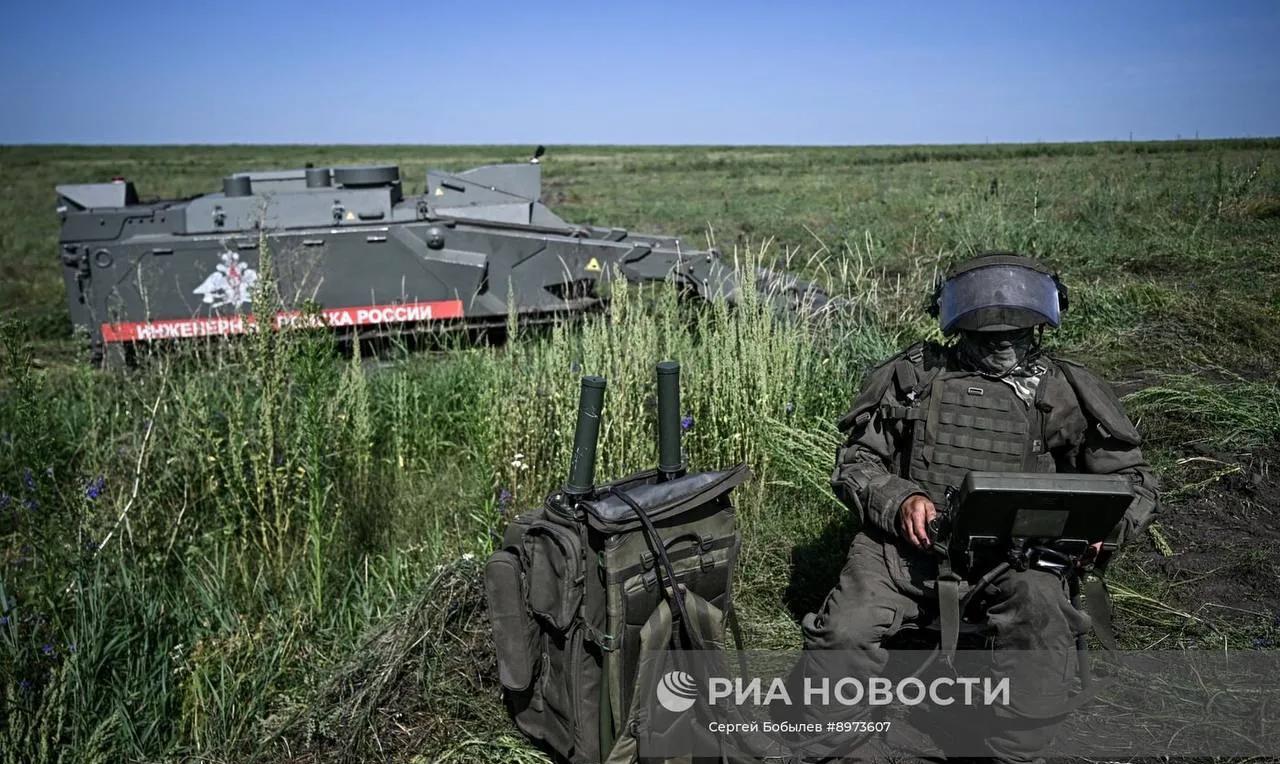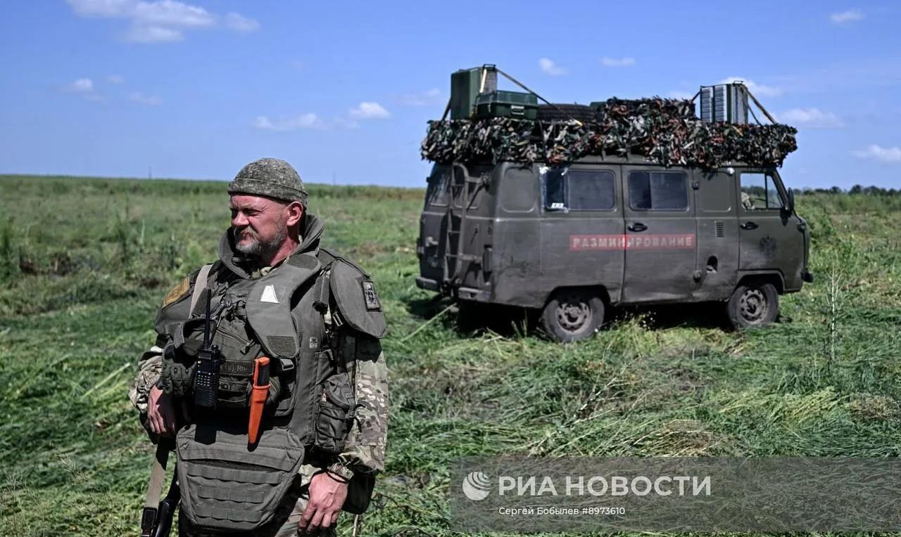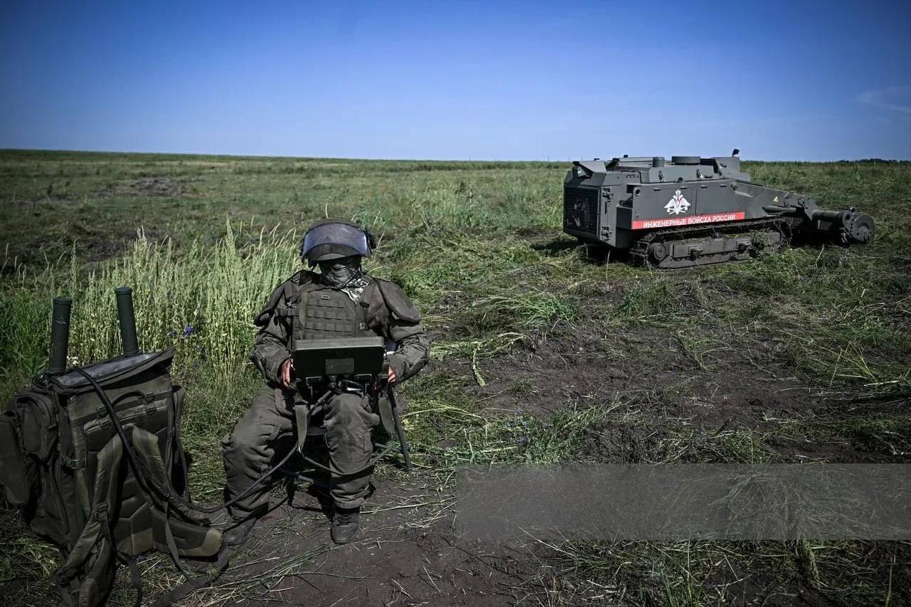 库尔斯克地区,俄军“北部”集群部队第92工程团的工兵进行搜排爆作业。 俄新社组图
