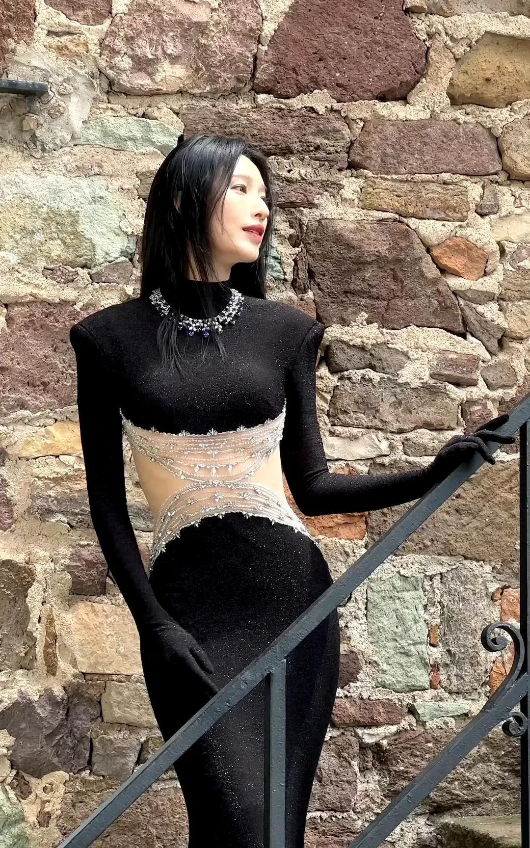 张俪这身材杀疯了!黑色露腰长裙镶钻设计,勾勒出逆天曲线,冷白皮配绝美表情,随手一摆就是性感暴击,美到开挂!