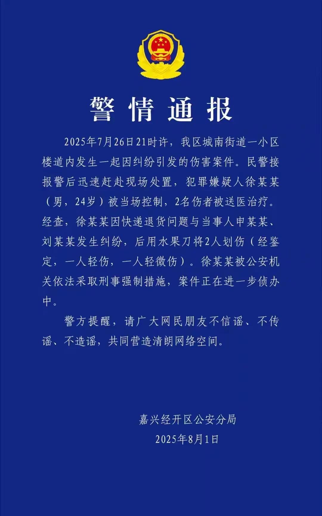 今天这个24岁的快递员和顾客发生争执的事情上了热搜,特意去看了一下视频,这个视频疑似是女业主拍摄的。 事发地是浙江嘉兴,原因是因为快递员因退货与两业主发生纠纷,据说是“买A退B”的原因,就是退货商品与原商品不一致,商家和顾客未能沟通解决的情况下,责任就被商家推给了快递员,快递公司让快递员去收回原有商品,去进行沟通。 视频里面提到了,关水阀,在门口扔垃圾等,就是因为不出门,说没有在家,后来出门后业主夫妻两人不停指责快递员的,这个快递小哥根本也插不上话。 这对夫妻最终还是激怒了这个快递员,其实从他的眼里可以看出来,他很无奈和委屈,还询问了一句“确定”?听口音是外地人,这对夫妻是本地人。 结果来说还是好一点,这对夫妻都是轻伤,没有生命危险,都已经出院,这个小伙子被刑事拘留,做事不要冲动。