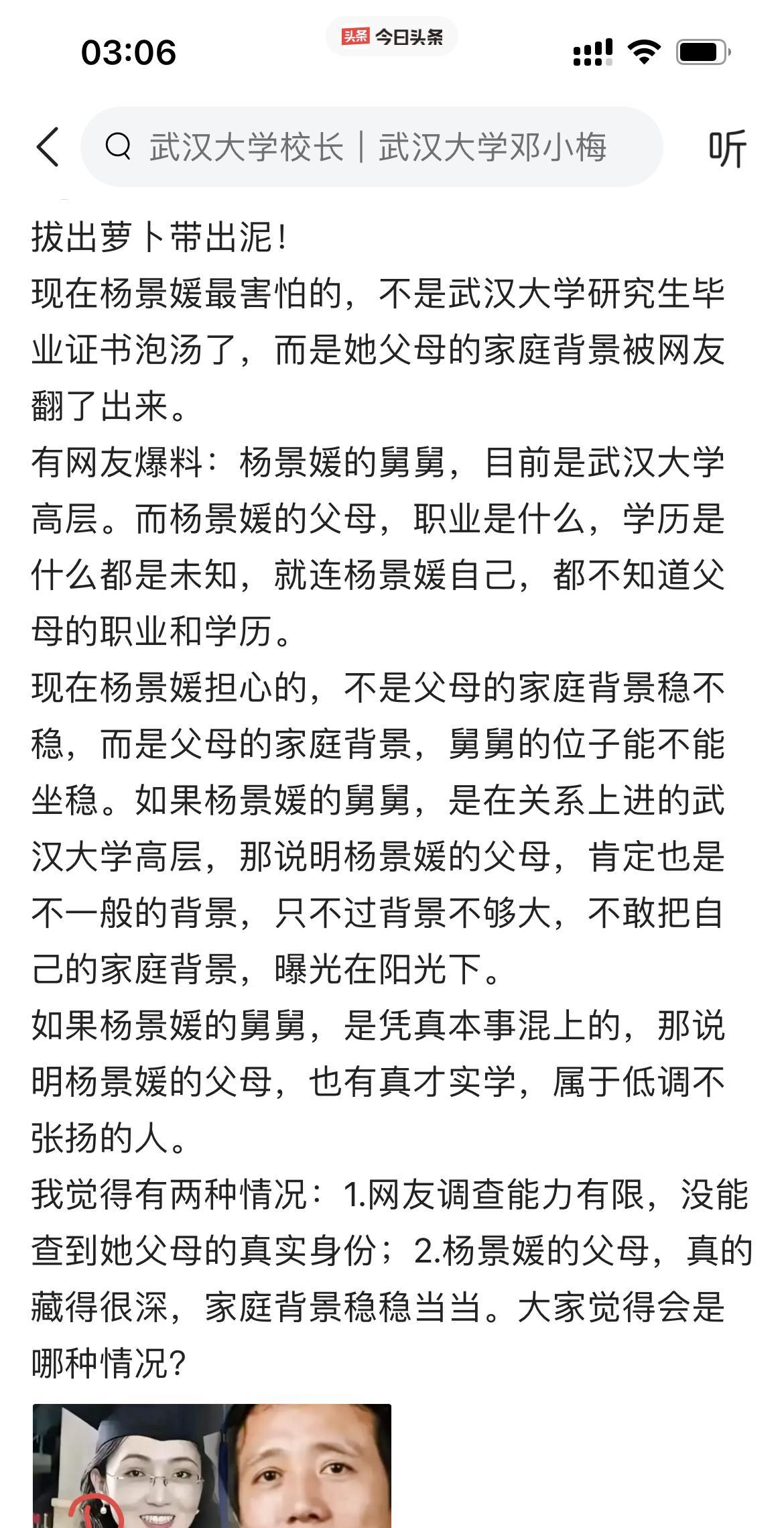 2023年,在武大图书馆自习时,武大女大学生杨景媛发现坐在对面的肖某用手摩擦腿部,拍下了5段视频,指控肖某对她“性骚扰",并故意发酵到网上,激起大众对肖某的网暴。 现在剧情出现两级反转,越来越多迹象表明原来偷拍,诬告,犯罪的是武汉大学女大学生杨景媛。肖某也已经被法院还以清白:“罪名不成立,是湿疹复发,在抓痒。”杨景媛的全部诉求也被驳回。 网友们现在推理,按正常思维,女性如果碰到杨同学遇到的这种情况,第一反应是立即躲开,或大声呵斥,让对方中止这种恶心行为! 而不是像杨同学这样的反常行为:爬桌下长时间录制多段不雅视频!如果杨同学没有这种爱好的话,其行为是在令人费解!或是本来就有不可告人的秘密!肖同学成了她这个秘密的牺牲品!#武大诬陷案# #武大性骚扰案# #武大杨某媛# #杨景媛论文#