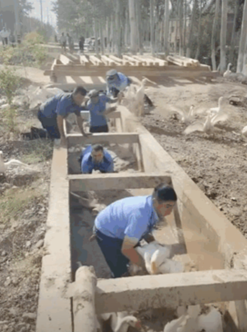 这是一条很有味道的新闻! 近日,新疆阿图什市突发山洪,一养鹅厂800多只大鹅瞬间