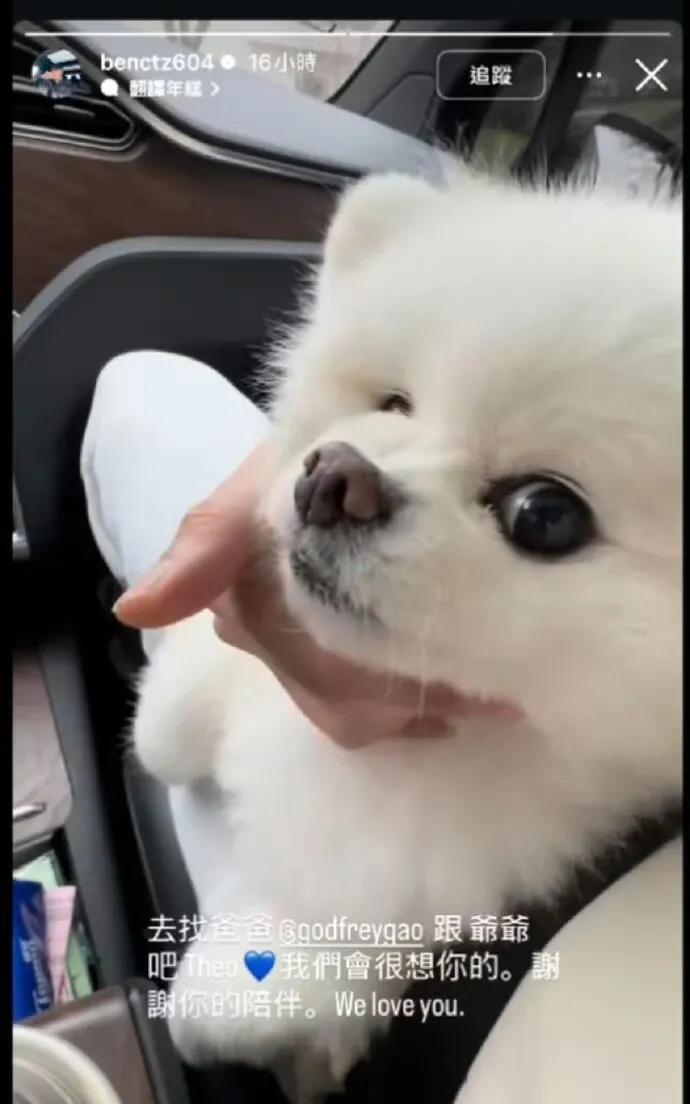 高以翔生前爱犬帝欧近日离世,好友透露它已前往天堂与高以翔及其父亲、爷爷团聚。 高以翔生前极为疼爱帝欧,无论去哪儿都随身携带,并为其开设社交账号记录成长点滴。自高以翔离世后,该账号便再未更新。 此后,高家父子常带帝欧去探望高以翔。2023年,高父也已离世。如今,爷爷、父亲与爱犬相继离去,一家人于天堂重逢。