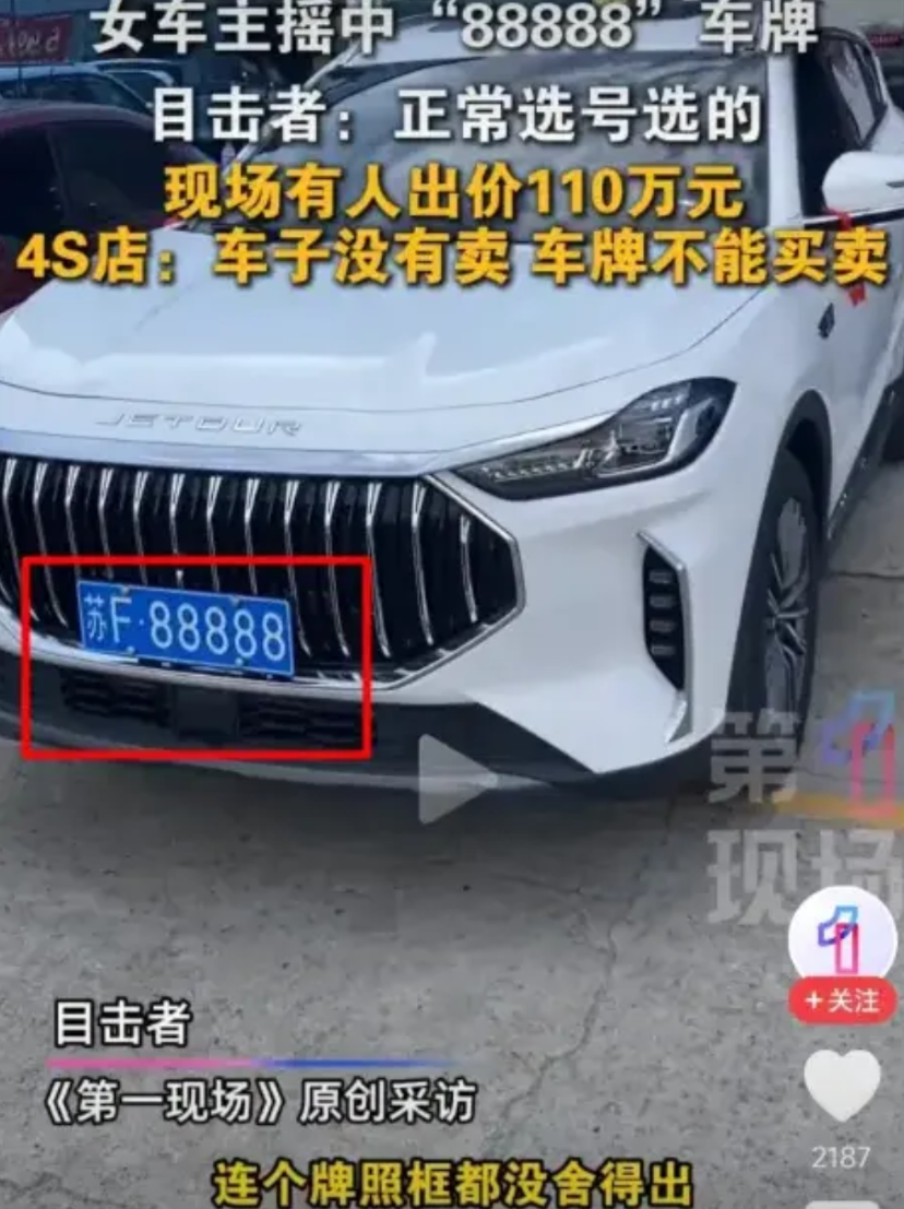 “这泼天的富贵!”江苏南通,女子买车事后幸运的抽到了“88888”的连号,有中介得知后当场准备出110万买走,最后有传言说女子卖了280万。有网友质疑这是暗箱操作,因为这种连号都是被锁的,最后4S出来辟谣,事情的经过是这样的。