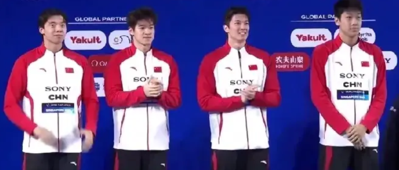 这真是温暖的一幕! 原来没想到,在新加坡游泳世锦赛4*200自由泳接力颁奖礼结