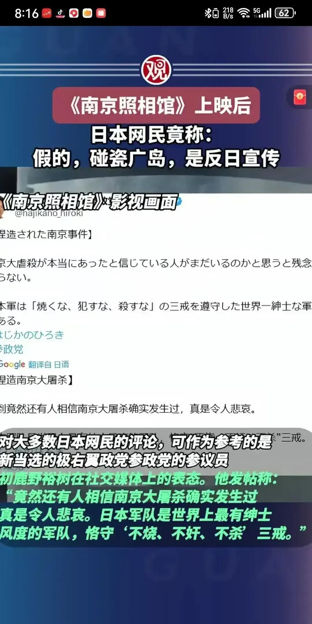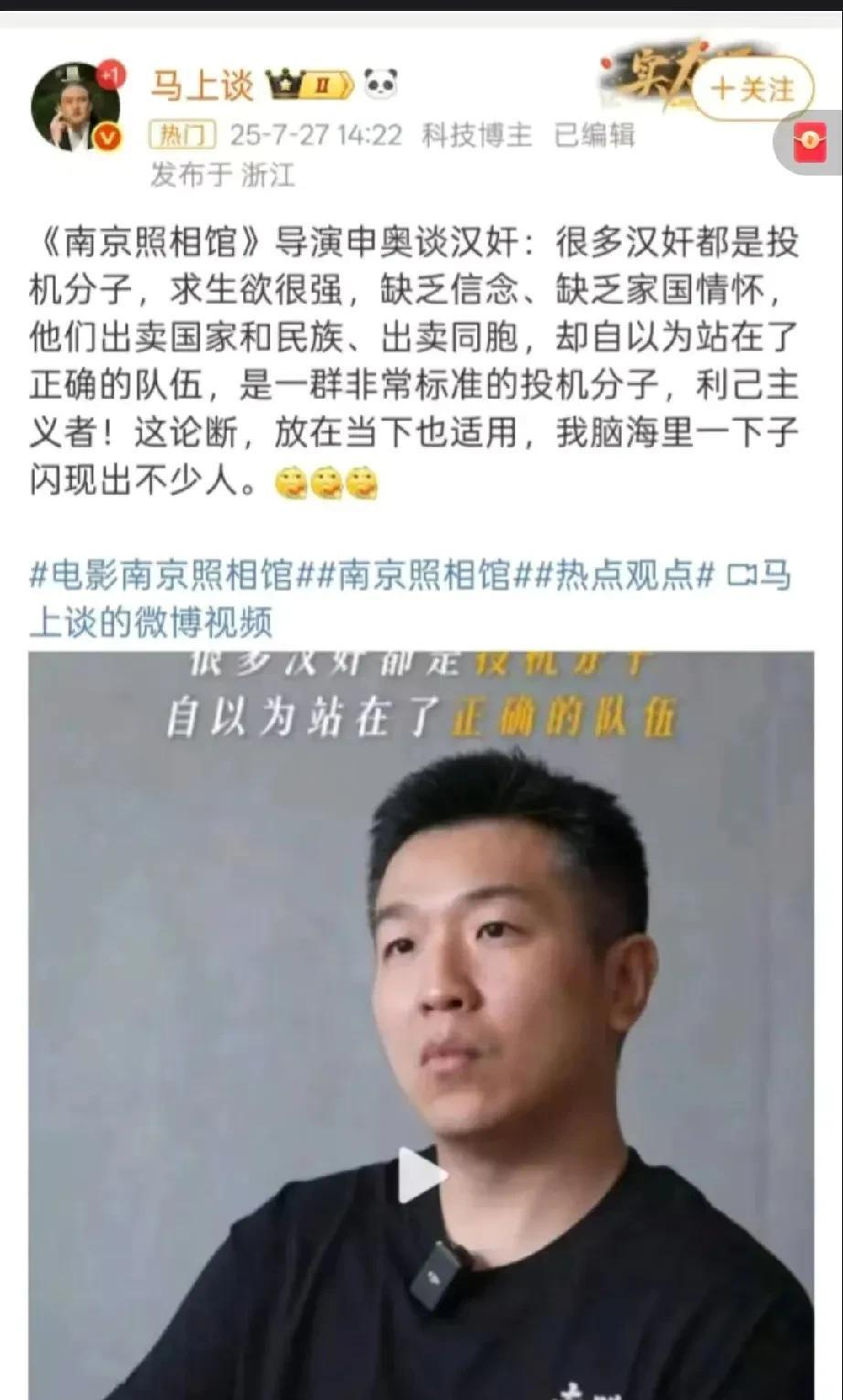 南京照相馆的导演对汉奸的总结,难怪可以拍出这么让大家肯定的历史电影,年轻的一代就是比老的一代的三观要正,在影视圈也是如此,之前有些导演拍同样题材的历史电影,还在电影里挖掘日军的人性闪光点,说日军做这些暴行,它的内心也是煎熬的,然后还要受害者反思,之前同样题材的历史电影,都有这种私货,虽然也很火爆,但是就是给人怪怪的感觉,但是这个南京照相馆就没有这种感觉,这是导演三观很正,所以这部电影也受到空前的抹黑,好多妖魔鬼怪都出来了,以各种理由让大家不要去电影院看!#头号创作者激励计划#