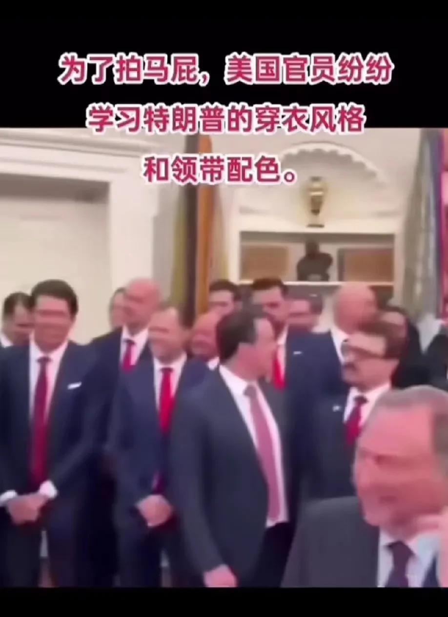 政客为了巴结川普,纷纷模仿川普的穿衣风格和领带的配色,如果只有一个相同风格,可能是因为撞衫了,但是一群政客都跟川普一样,不是巴结是为了啥,而且像黄仁勋这种极力疏远政治的华人,看到马斯克的下场后,都不得不巴结川普,说川普是美国独一无二的优势,这种肉麻的话,也只有美国的人情世故才能诞生的!美国之所以没有腐败,那是美国的政客早就把腐败合法化了,还有很多乱七八糟的事情,在美国都合法化了,因为合法,所以在法律层面就没有这些问题,但问题实际是存在的!#头号创作者激励计划#