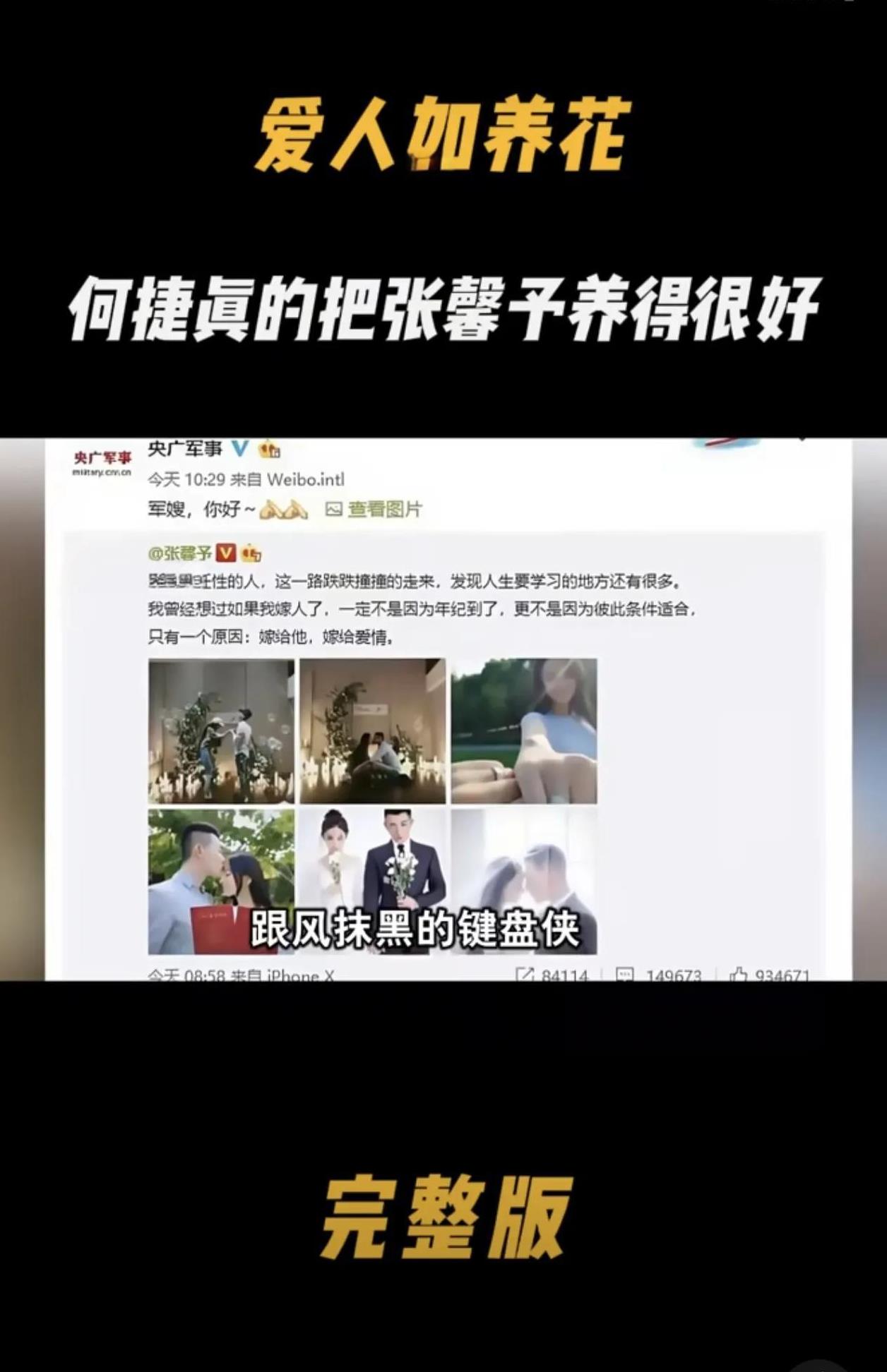#头号创作者激励计划# 张馨予真是一个睿智的女人,别的女明星都嫁富豪,或者同行,但基本上婚姻不幸福,而她嫁了一个军人,如今被宠成“公主”,七年过去了,婚姻稳定,幸福美满。 当初他们结婚时一度被大众质疑,一个身价千万的当红明星竟然嫁给一个月薪不过万的军人,他们的婚姻肯定长不了,其实何婕的背景也不是普通人,父亲是副师级教授,爷爷还参加过抗美援朝,是妥妥的“红三代”,当初结婚时,央广军事还发文祝福,还尊称“军嫂”,何捷自身也很优秀,参加过汶川大地震,西藏反恐,是一位名符其实的英雄。 了解情况的网友纷纷佩服张馨予的眼光,她这场婚姻说得上是名利双收,最重要是为自己找到了一个好归宿。