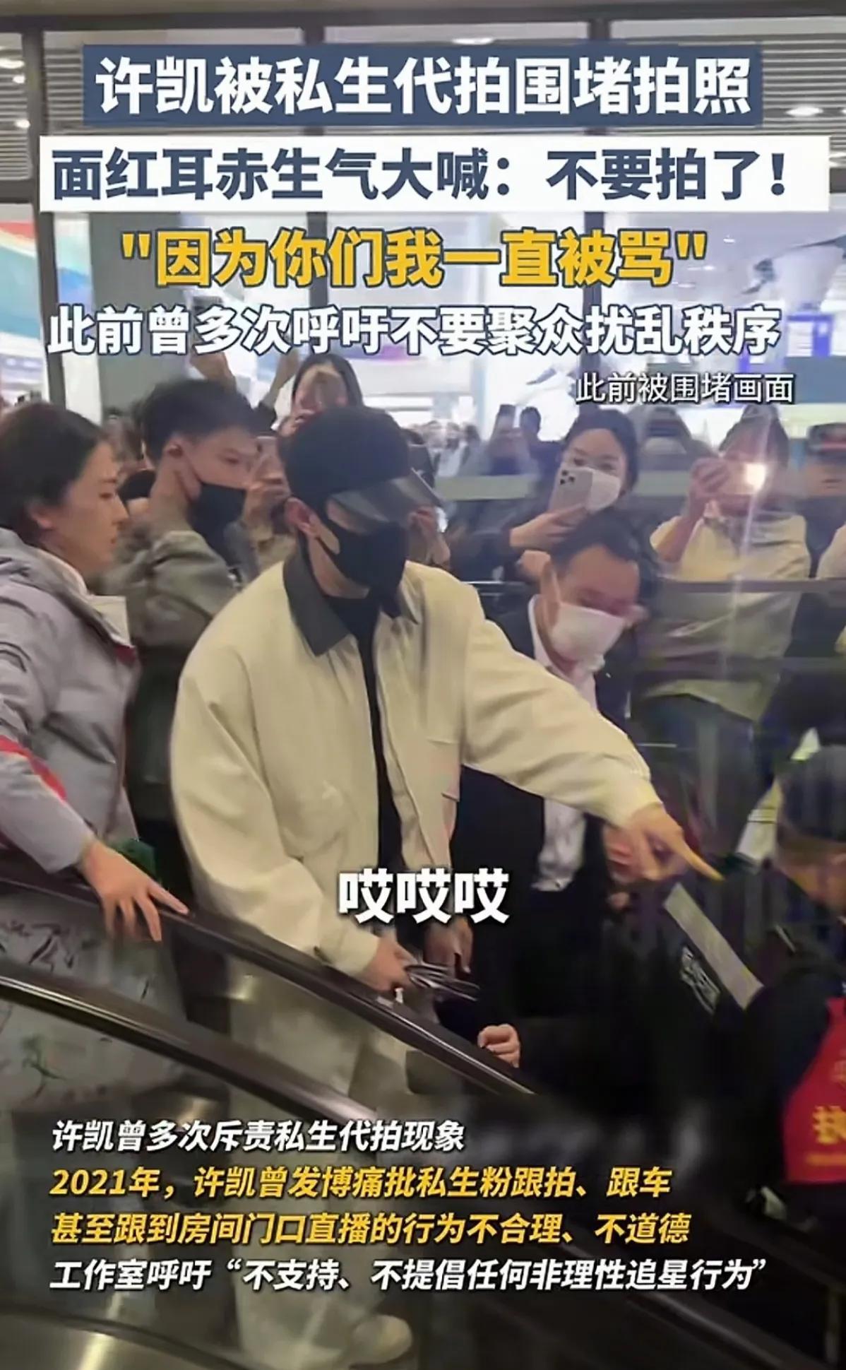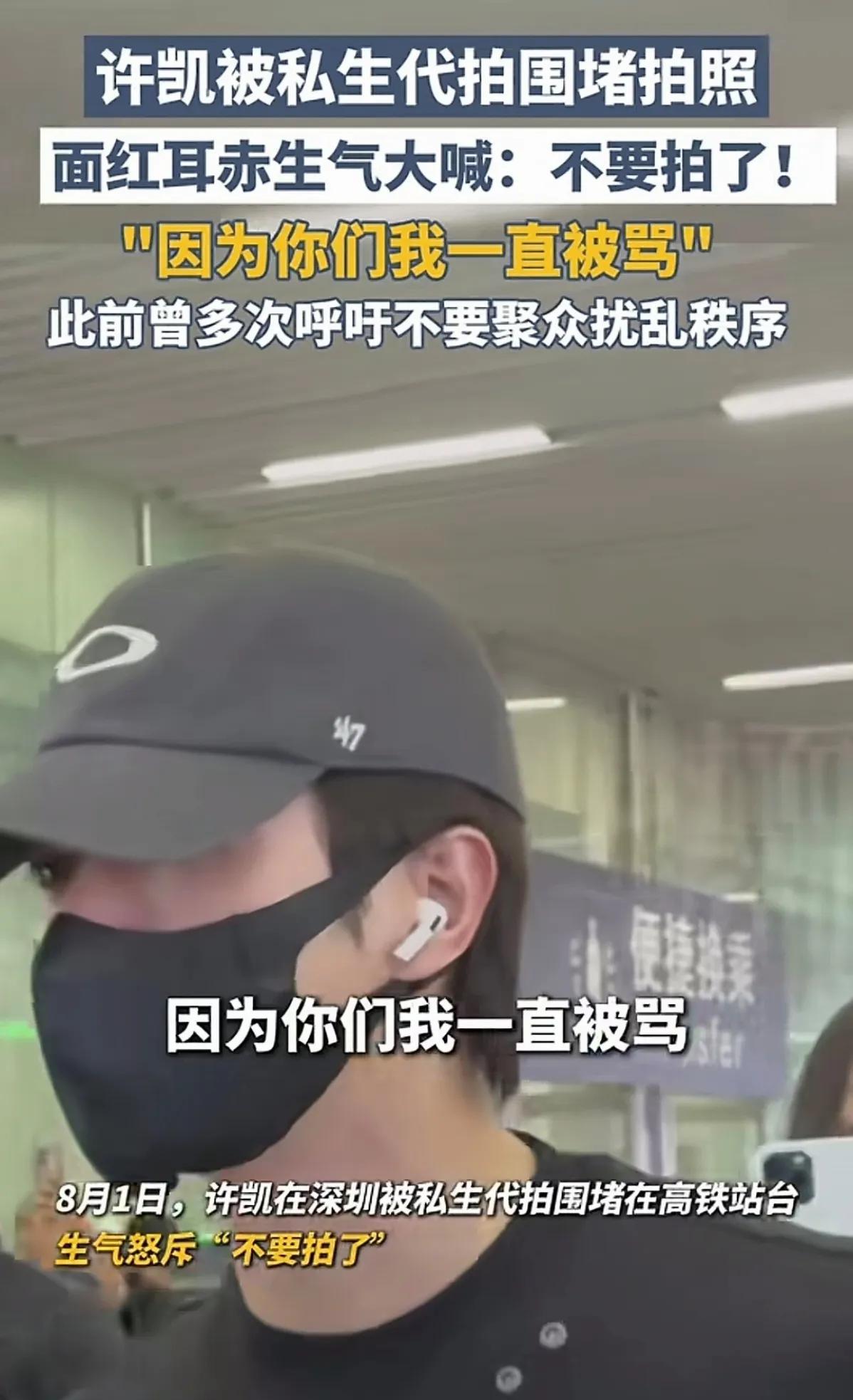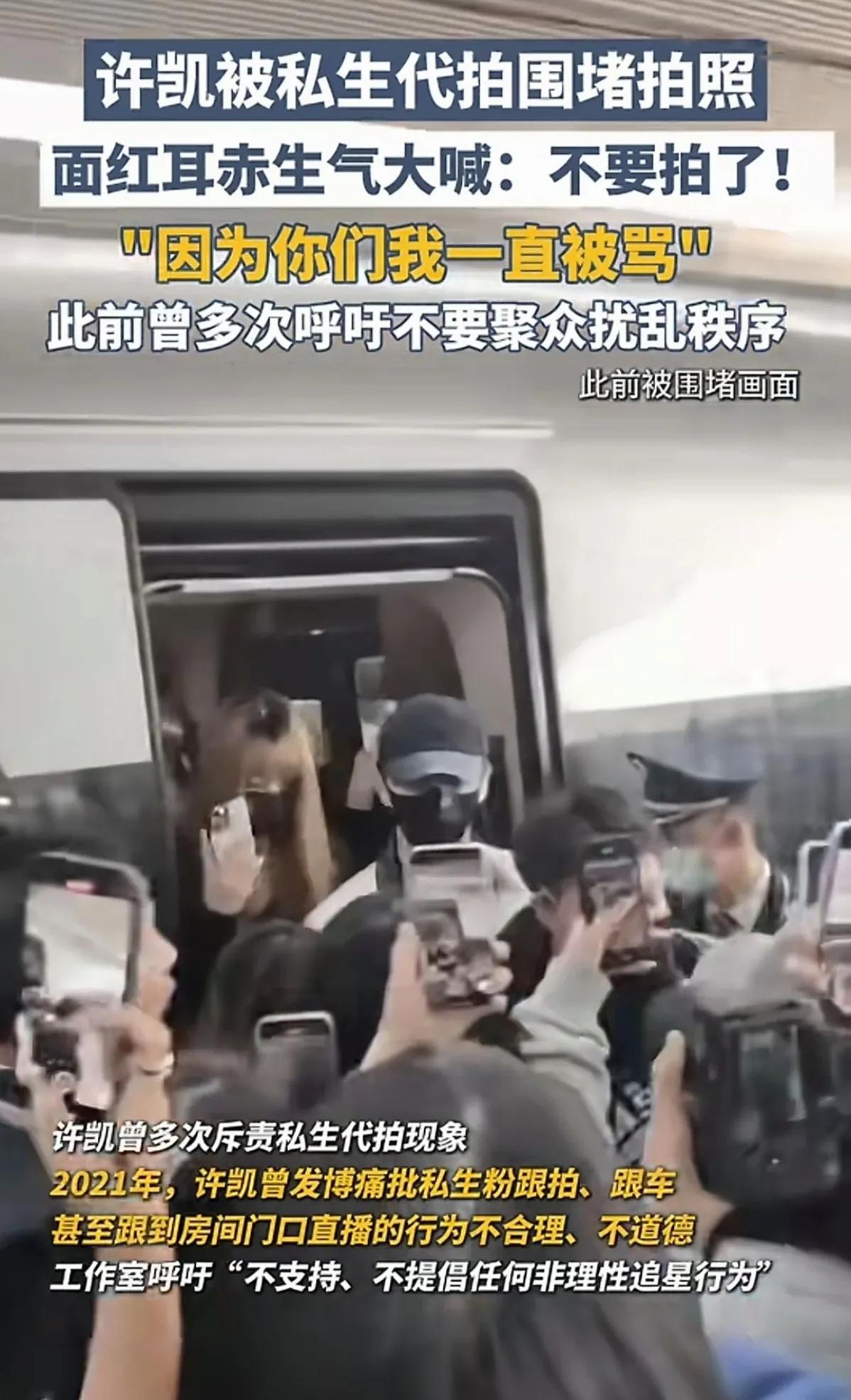 一线男明星许凯刚下高铁就被私生代拍围堵,气的破口大骂。 私生代拍一度造成人群拥挤