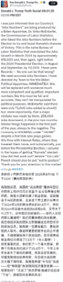 评几句:解决不了问题就解决提出问题的人。在抓经济和抓就业之间选择了先抓劳工统计局。经济搞不好,就整治那个没统计好数字的人。特朗普的做法也遭到了众多美国网民的调侃,对于劳工统计局局长是否是“害群之马”,以及特朗普是否肆意妄为,美国民众观点两极分化,足见这一事件在美国社会引发的巨大争议。(特朗普解雇劳工统计局局长的全文见图二。)